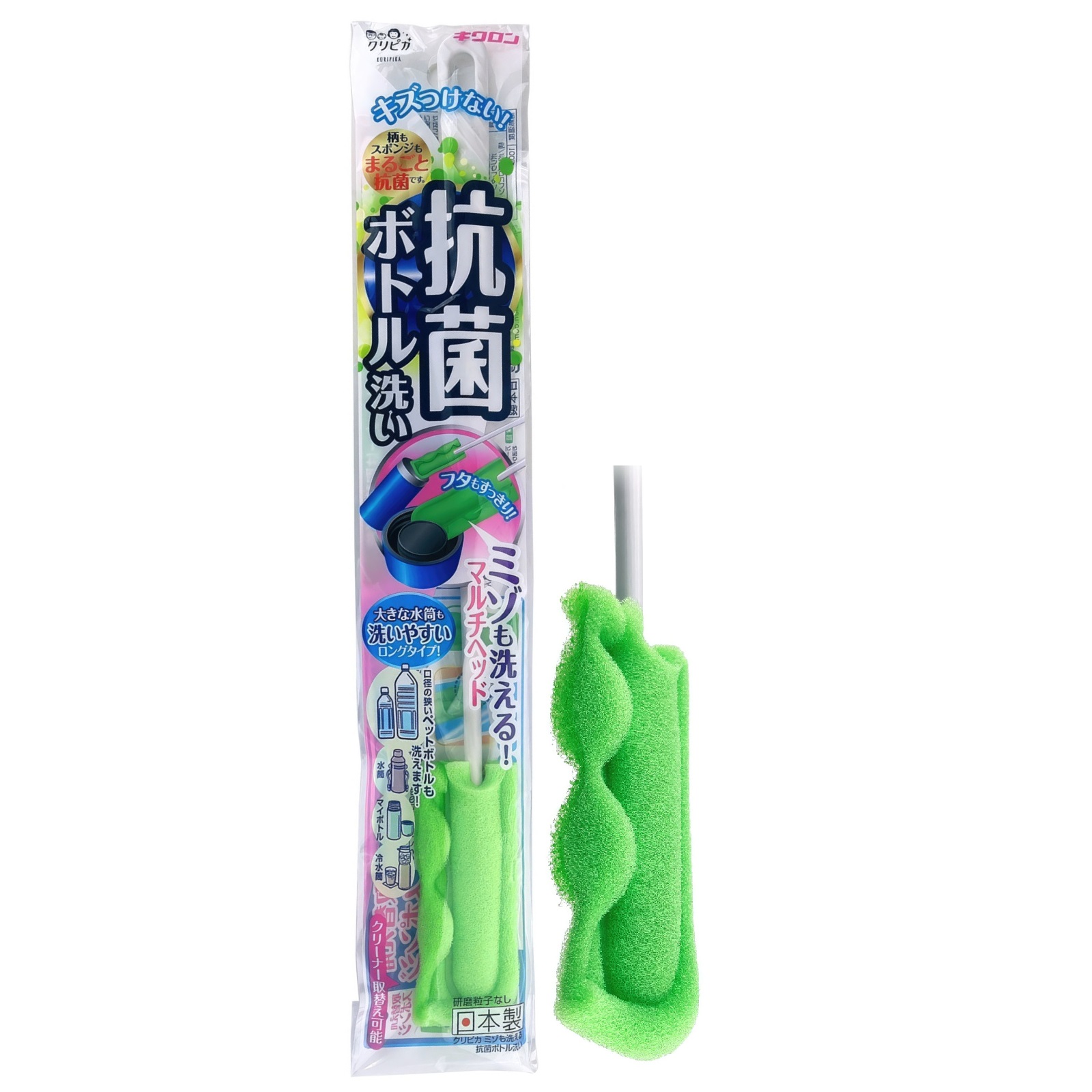 Антибактериальная губка для кухни предназначена для мытья бутылок, стаканов, термосов и других подобных изделий. Преимущества изделия: · Антибактериальная пропитка средством на основе серебра устраняет 99,9% бактерий с поверхности губки после использования. · Длинная ручка позволяет мыть даже высокие и узкие бутылки. · Узкая губка-насадка позволяет очищать труднодоступные участки, например, дно бутылки или углубления в крышке (см. рис. на упаковке). · Не содержит абразивных частиц. Не царапает поверхности. Внимание при применении: губка предназначена только для мытья посуды и кухонных принадлежностей. Во время первого использования могут оставаться фрагменты волокон на поверхности. Не используйте щелочные средства, отбеливатели на основе хлора или средства для удаления плесени, так как это приведет к порче губки. После использования необходимо тщательно промыть. Хранить вдали от огня и нагревательных приборов. * Перед очищением деликатных поверхностей рекомендуем протестировать губку на незаметном участке. Состав: нейлон, полиуретан, полипропилен. Термостойкость – 100 градусов. Размер: 37x3.5x1 см. Цвет: зеленый. Количество: 1 шт/уп. Производитель: “KIKULON CO., LTD”, 128 Moriotebo, Wakayama-shi, Япония |