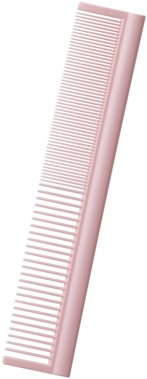 Прочная, долговечная и термостойкая расческа для разделения волос. Имеет частые узкие и редкие более широкие зубцы, а также специальные зубцы для разделения волос на пробор. Удобная нескользящая часть для захвата. Отлично подходит для использования во время стрижки волос при любой технике. Не повреждает волосы и не травмирует кожу головы.